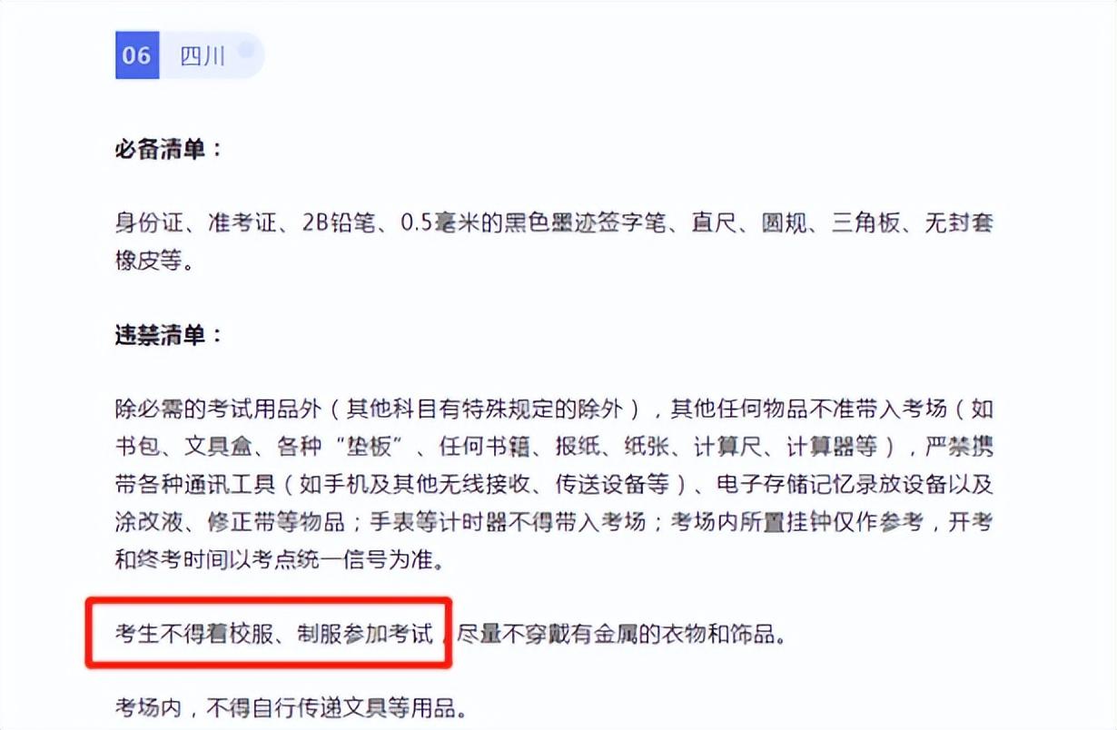 除此之外,很多人都觉得,有些地区不让考生穿校服已经是极限了,但是成都高考还会对考生有一个影响的规定。