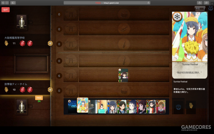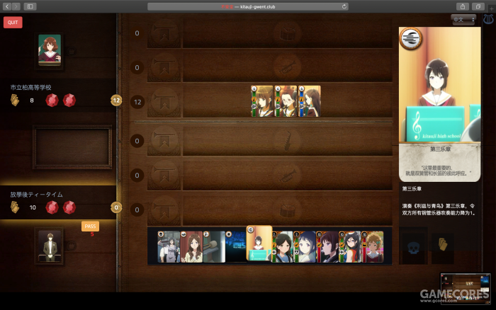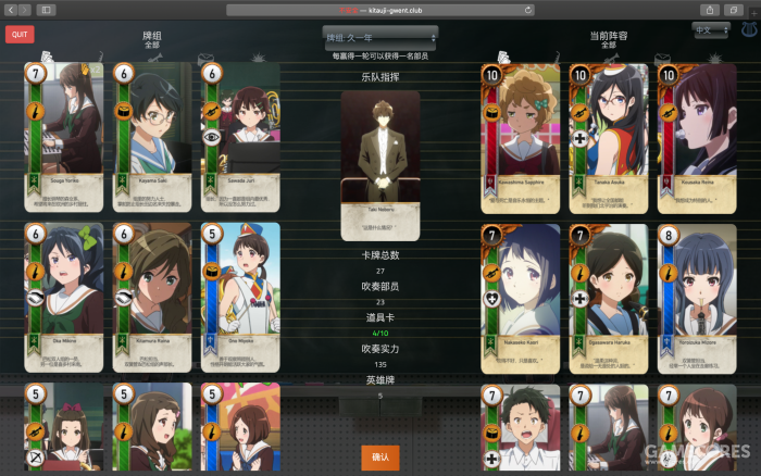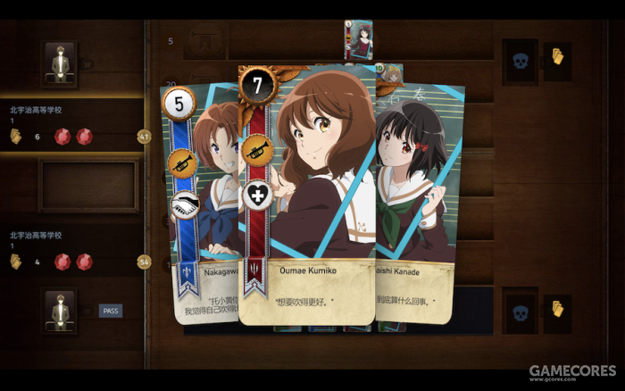 不过仅凭他们却绝对不够。就算是强如小天使,在《利兹与青鸟》第三乐章的演奏中的惊艳发挥,北宇治也只能止步关西大赛,优子泪洒夏纪怀中。想要吹得更好,想要成为特别的人,甚至就只是想要为心中的某人而演奏,都不可避免地需要更多的部员,更出色的指挥,以及作为经理人的玩家你更多地肝(划掉)。卡牌会在每次胜出的正式比赛后随机掉落。