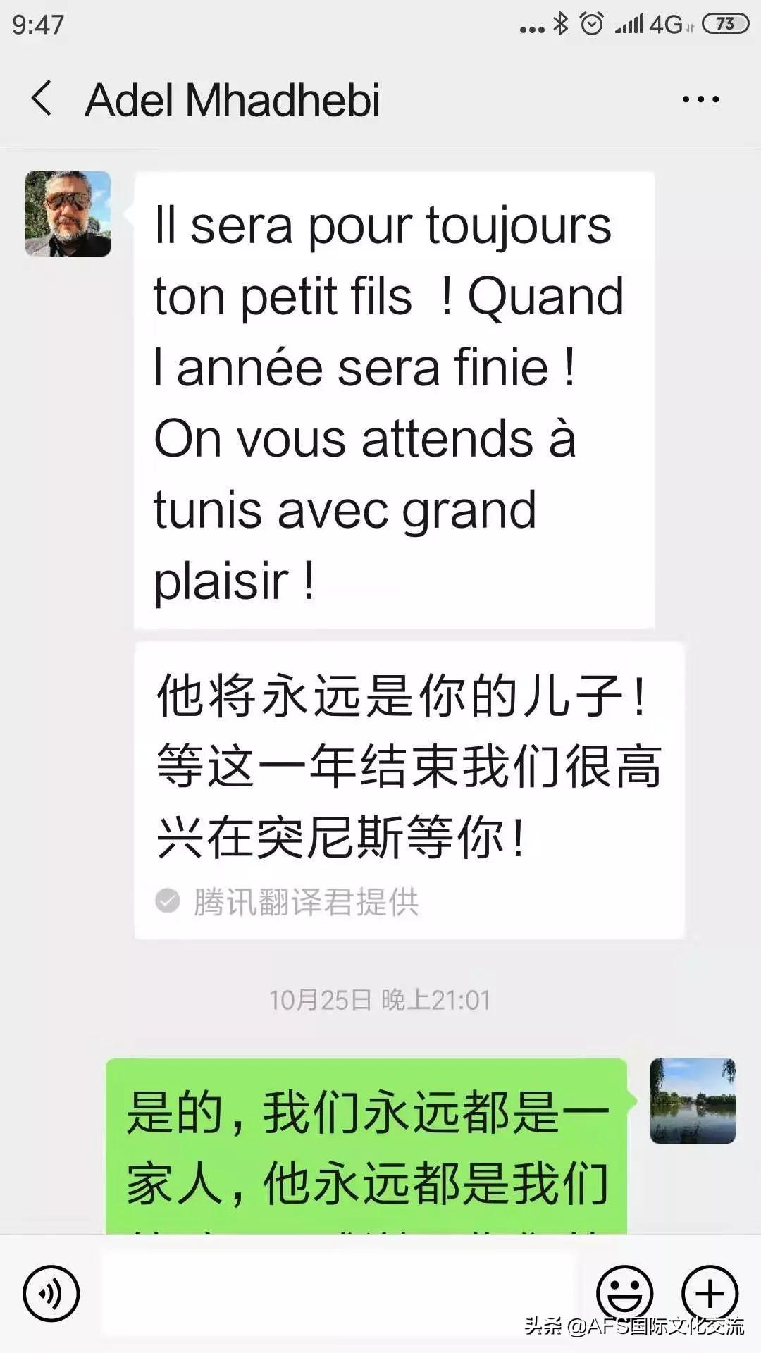 转眼志远到我家已整2个月的时间了,我们一起经历了一些事,接待生活必然有很多意想不到的麻烦,也会有沟通交流的问题,但是一切都阻挡不了我外孙和我的感情,通过AFS项目我收获了来自突尼斯的外孙,我了解了更多跨国文化,我更感谢这宝贵的经历将两个家庭也连在了一起。