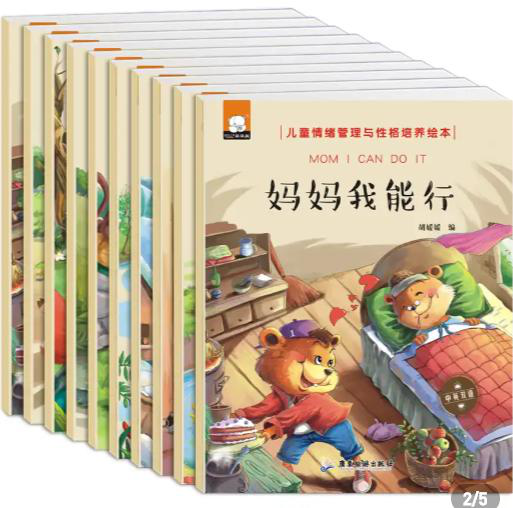 李玫瑾教授推荐的这套《儿童情绪管理与性格培养绘本》就很不错,一套共有10册。中英双语绘本,对于家长启蒙孩子的英语思维也有很大帮助。在3岁前,父母可以读给孩子听,当做睡前故事书。在3-6岁当做好习惯养成的故事书,用来帮助孩子管理情绪,养成好性格。