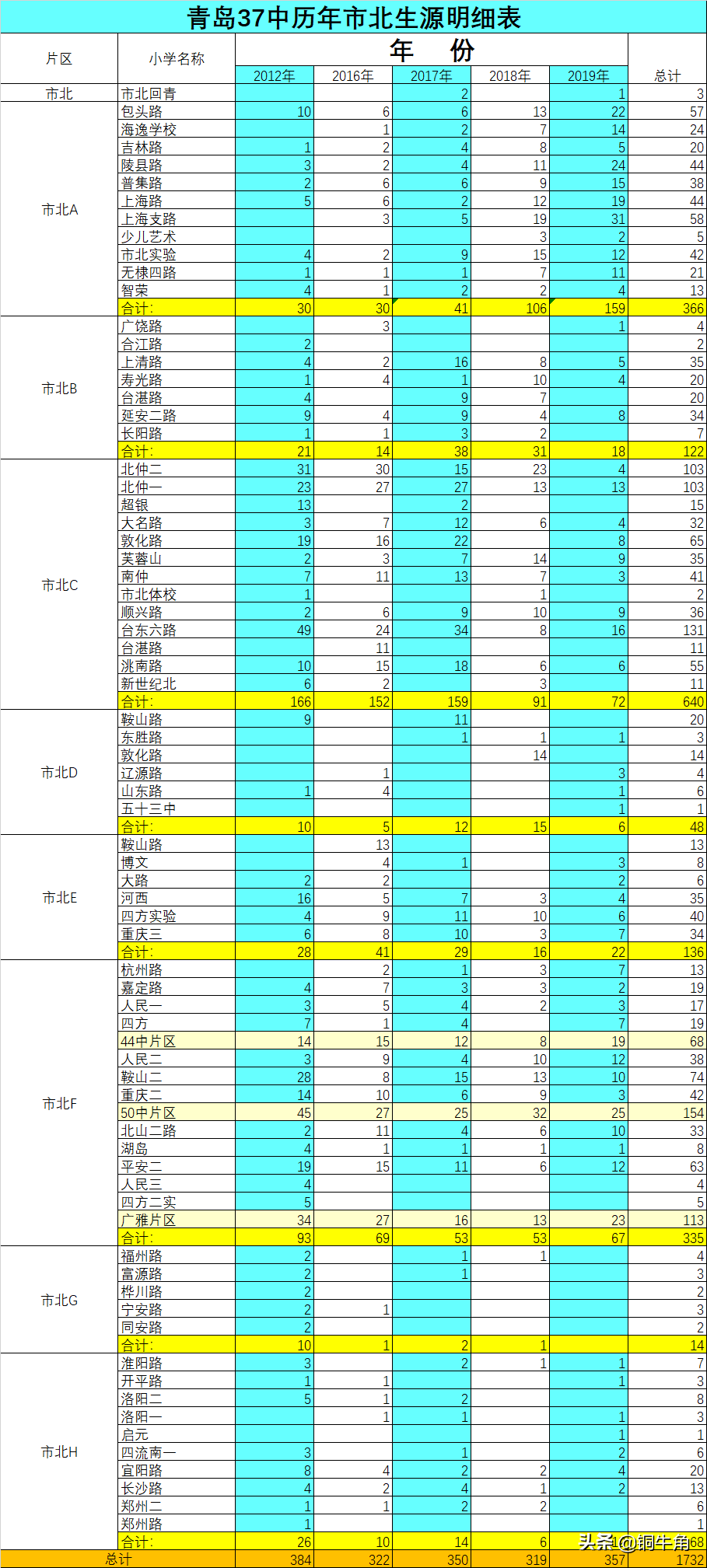 也许是因为距离太远,交通不便的缘故吧,市北H片区每年通过电脑派位进入青岛实验初中和青岛37中的人数都很少,可以说到了几乎可以忽略不计的程度。