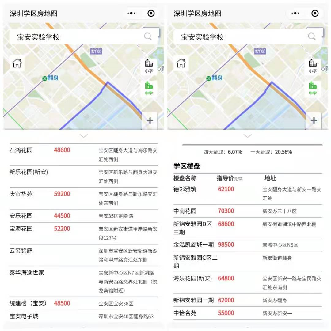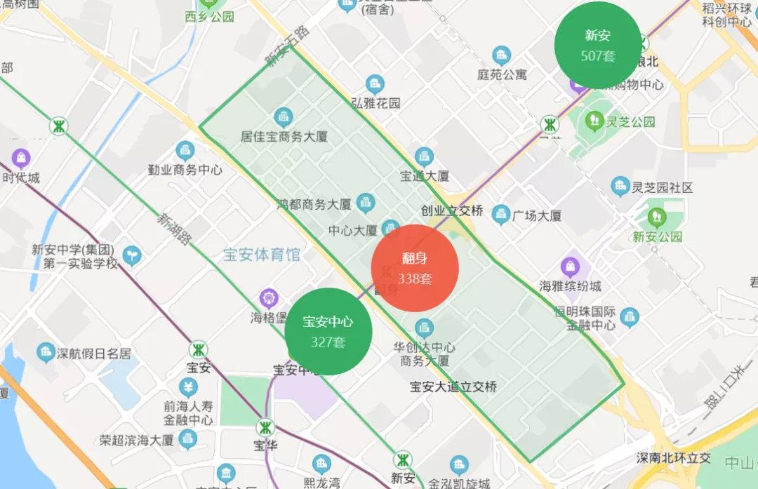 最后,再了解一下翻身片区的楼盘情况,目前短期内暂无新盘在售,二手房方面参见宝安实验学校学区房的指导价,其中最低的是4.45万/㎡的安乐花园(具体以市场成交价为准),目前挂牌的仅房源仅1个。