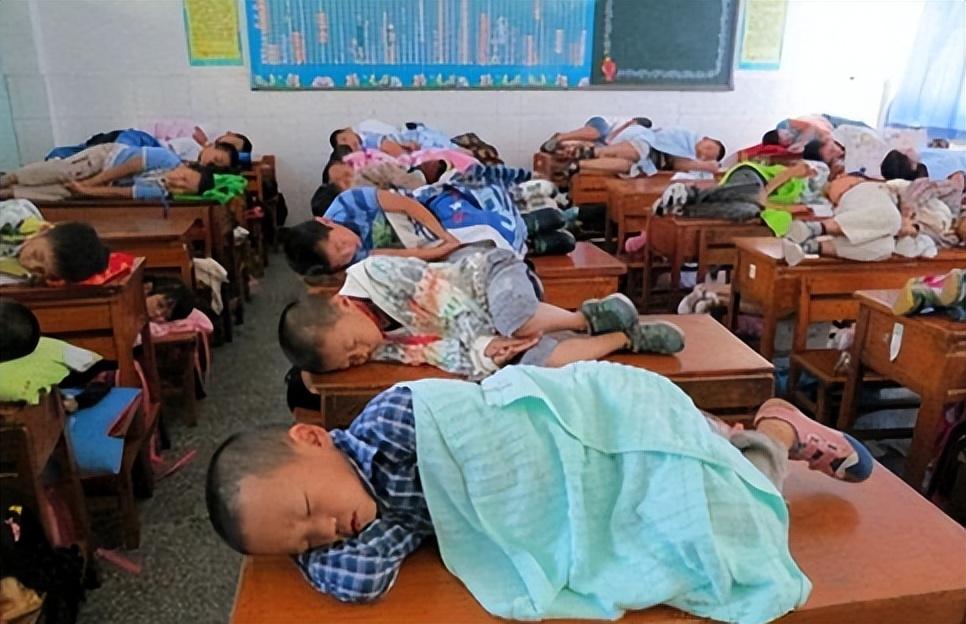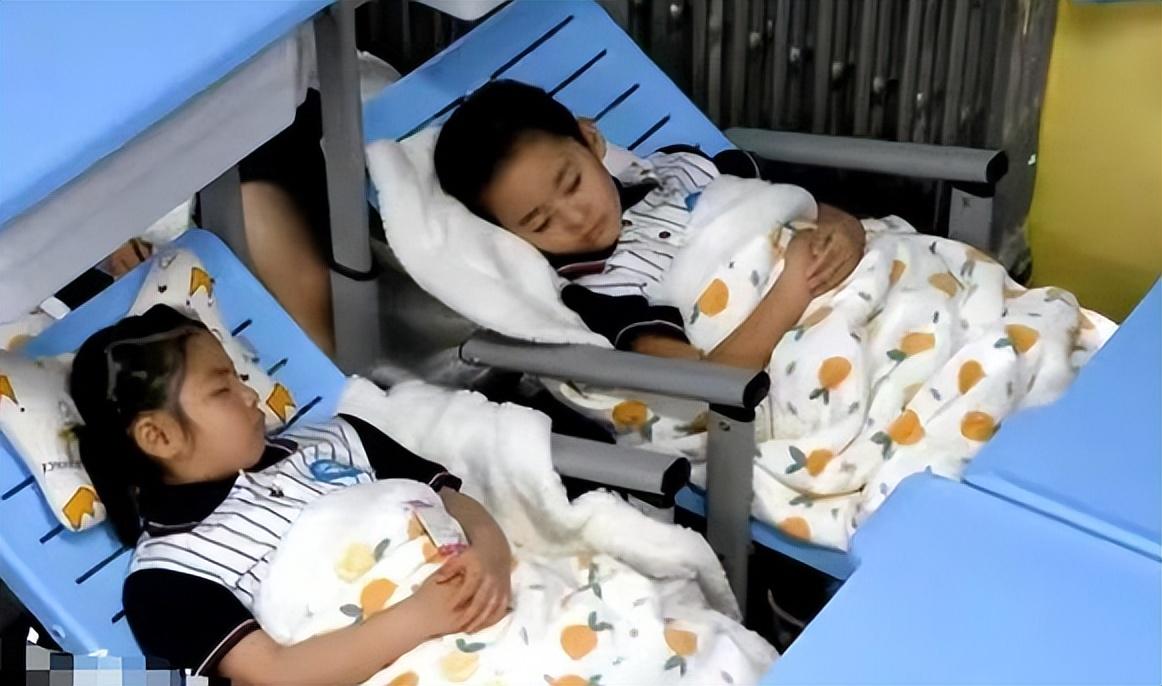 图片上的学生看起来睡得都很香,不过睡觉的动作也是整齐划一。再加上并不是所有学生都适合午睡,有的学生从上幼儿园开始,就不喜欢午睡,本来精神头挺好的,睡完反而没精神了,整个下午上课都提不起精神来。