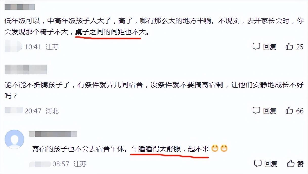 没想到,班主任把学生午睡的照片发到网上后火了。起初不少家长拍手叫好,睡午觉对学生来说太重要了。以往担心学生午睡条件有限,会脖子疼胳膊麻,现在能躺下来,像在幼儿园一样安心午睡,相信下午上课一定精力充沛。
