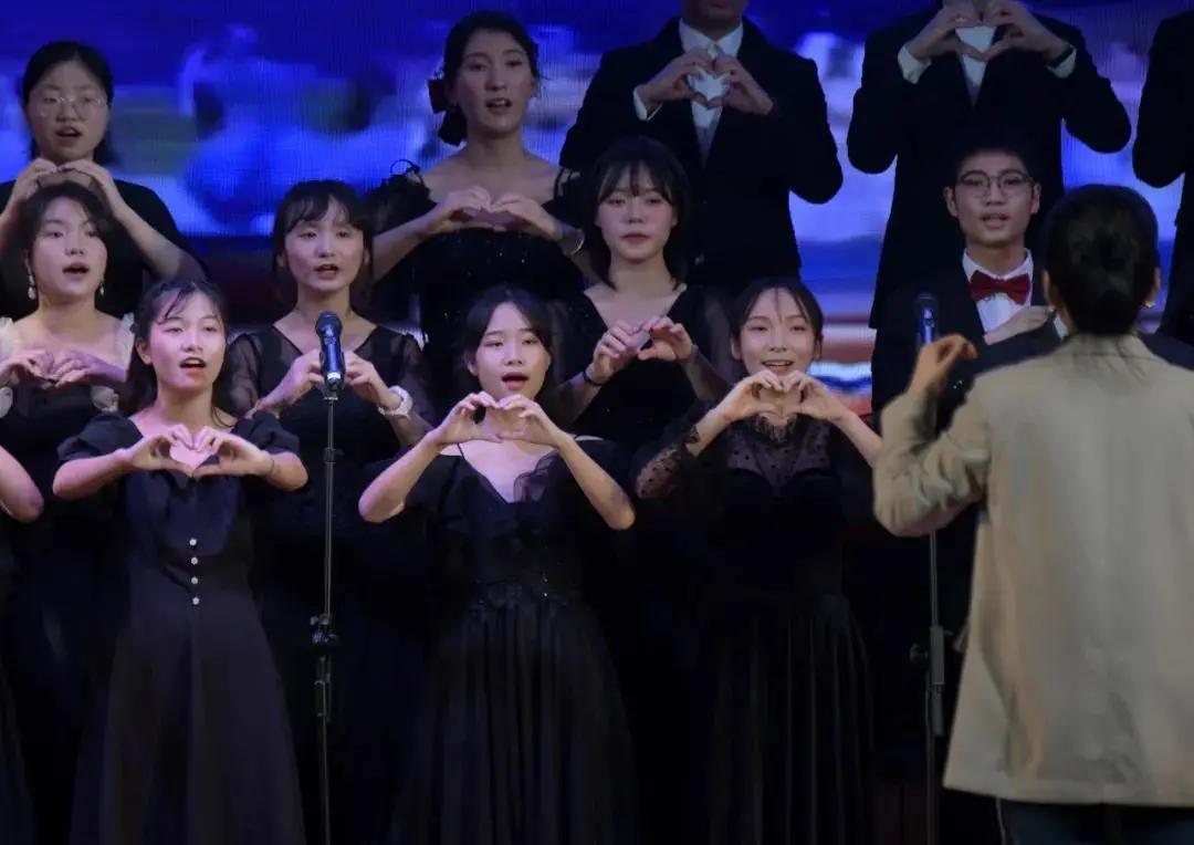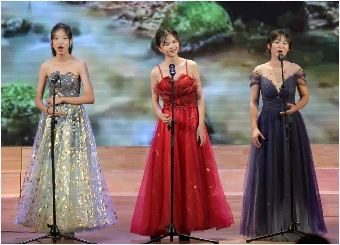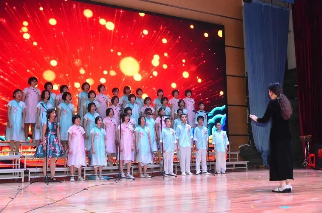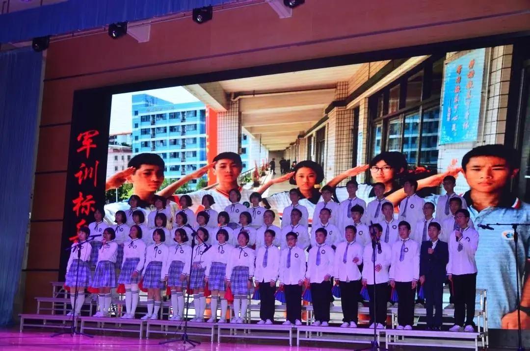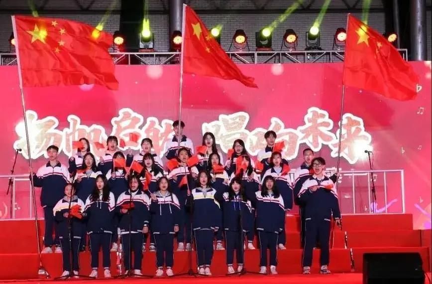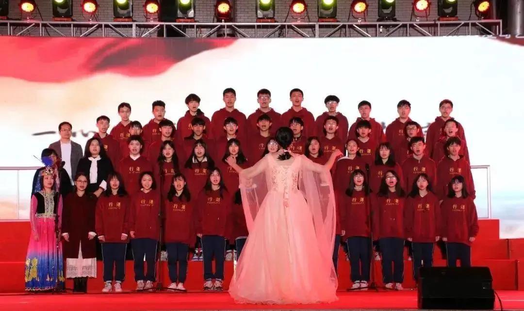 率先上场的是狮高合唱队,一首《红旗飘飘》,一首《爱我中华》将现场气氛点燃。然后是全校30个班级合唱曲目,每个班级均邀请科任教师上台,师生同唱一首歌,展现了狮高师生之间和谐友爱之情。