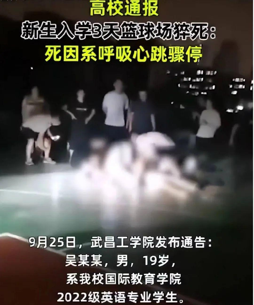 但是意外时有发生,2022年9月15日18时左右,武昌工学院一位大一新生在学校篮球场打篮球,突然倒地不起,随即该生被送往湖北省人民医院紧急救治,但是很遗憾的是,当天20:15分,经抢救无效,这个年轻的生命彻底的离开了我们。