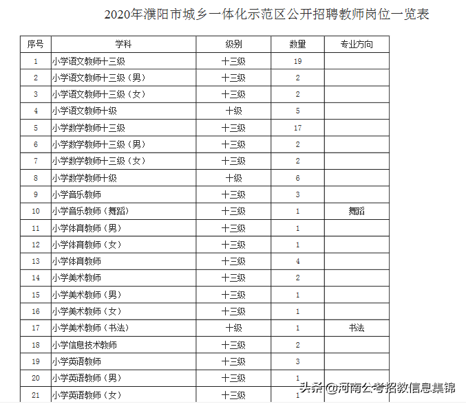 具体招聘岗位、数量见《2020年濮阳市城乡一体化示范区学校公开招聘教师岗位一览表》(附件1)。
