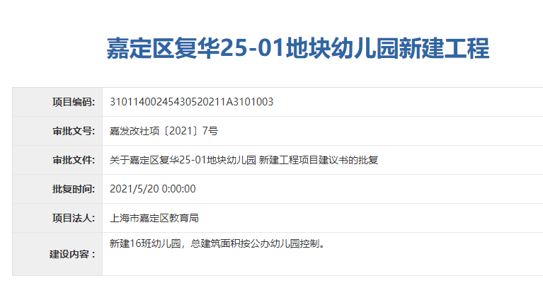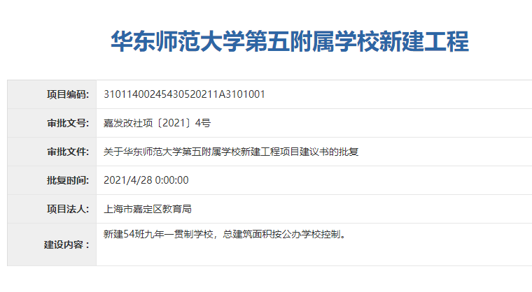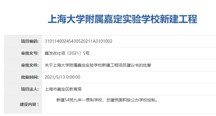 另外,嘉定还有3所学校新建工程项目建议书获得批复,详见↓上海大学附属嘉定实验学校