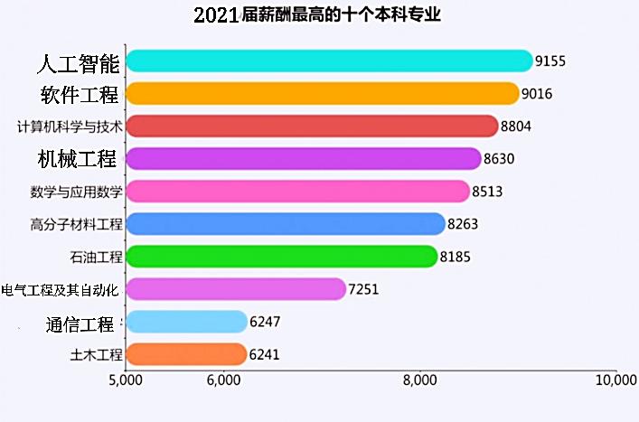 据统计人工智能专业的学生平均年薪达到了33万,收入很高,稳定超过了互联网计算机行业,学生报考更不要错过机会,推荐院校为清华大学,浙江大学,上海交通大学,哈尔滨工业大学。