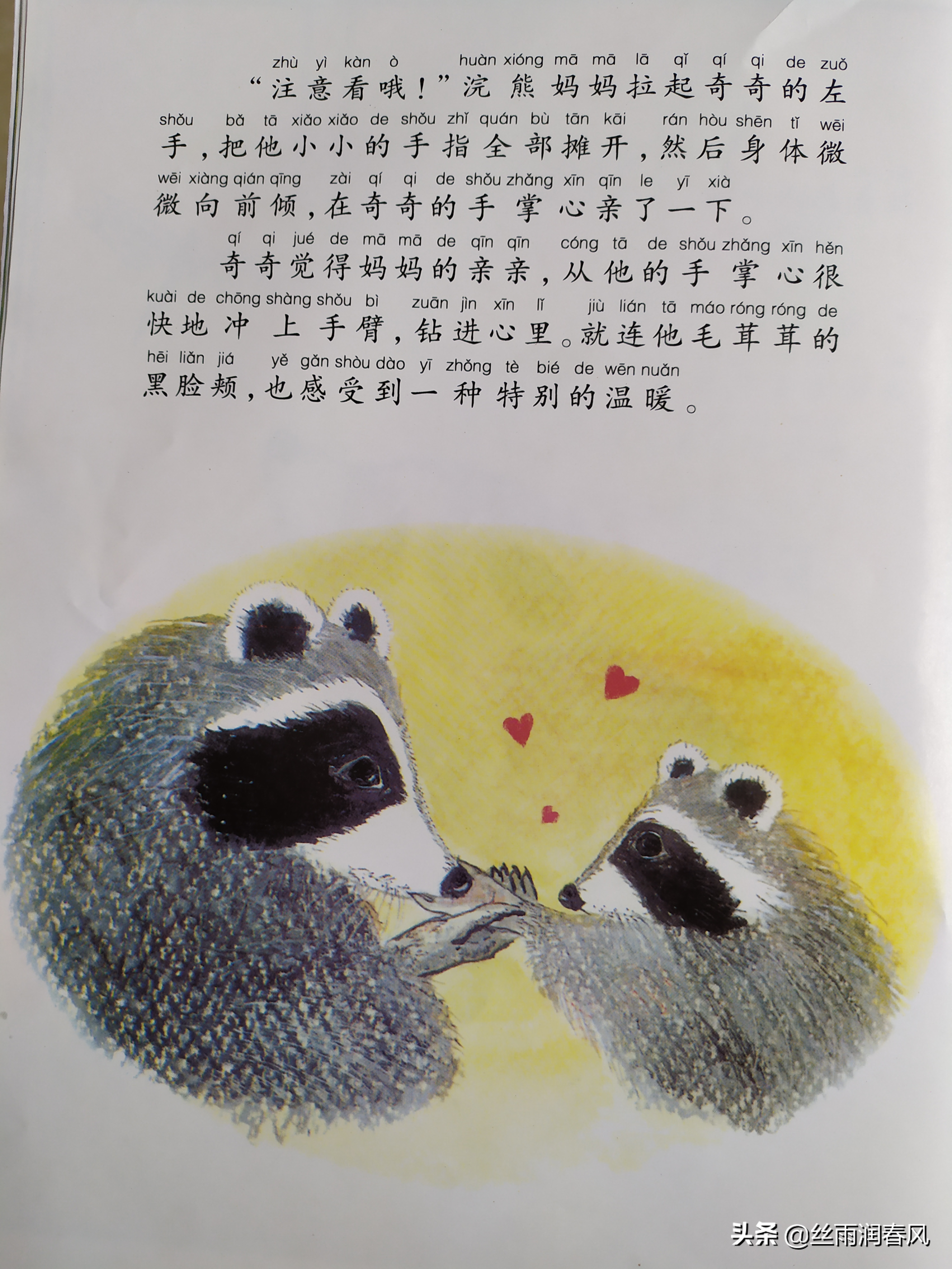 作为家长,我们也可以像浣熊妈妈一样,送给孩子一个魔法亲亲,让爱一直陪着孩子,让孩子觉得不会孤单,时刻感觉得家的关爱。我们不要吝惜表达自己对孩子的爱,也让孩子学会表达爱与被爱,把这个“法宝”一直传下去。