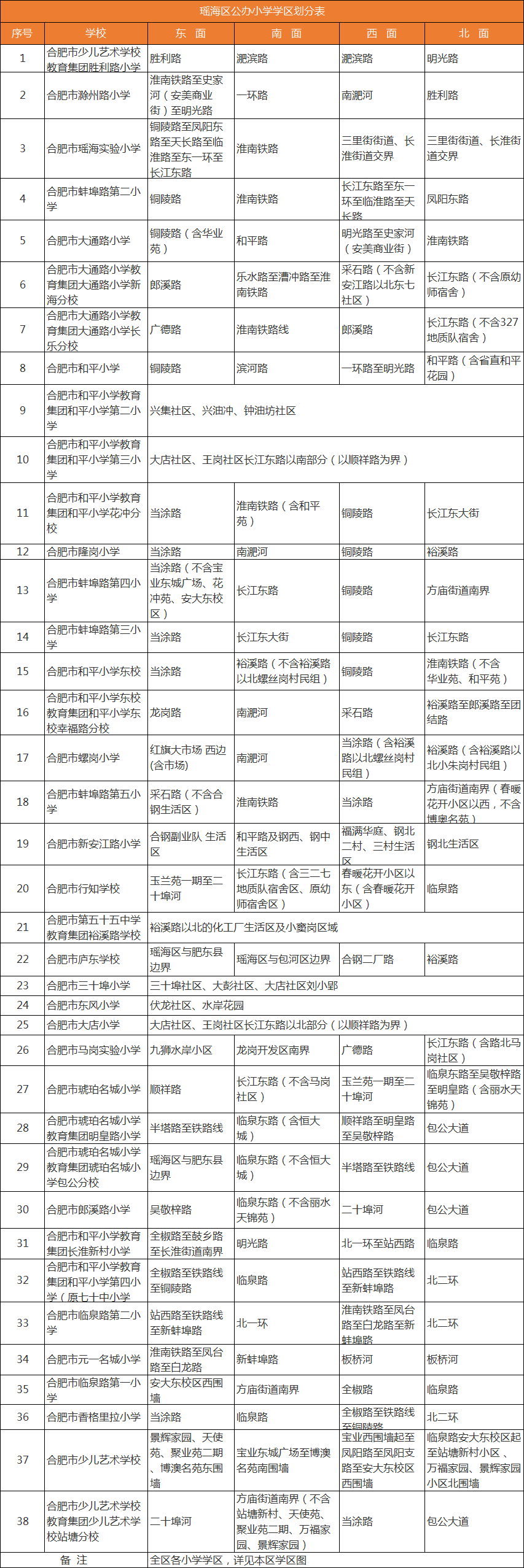 今天小莉老师先带大家梳理合肥市最新的学区划分,先看各区小学学区划分。