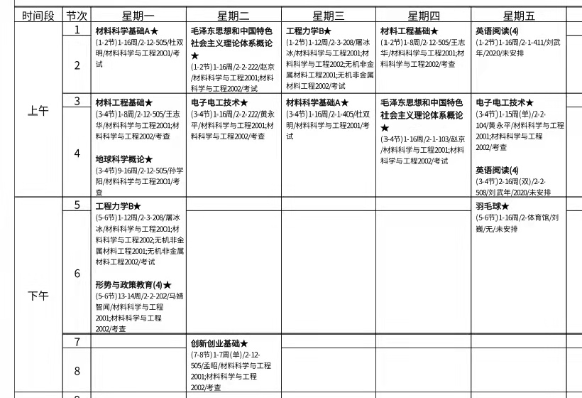 3月初春,不知不觉间,西安科技大学开学已经一月有余,学子们的生活也逐渐步入正轨。作为学子学习生活中必不可少的重要存在,西安科技大学部分课程表也随着学期的开始被正式“曝光”。如今,西科学子们正带着饱满的热情,在课程表的指引下,奔向梦中的目标。本期推送,小编带你去领略西科的“花式”课表,沉浸式体验大学生活!