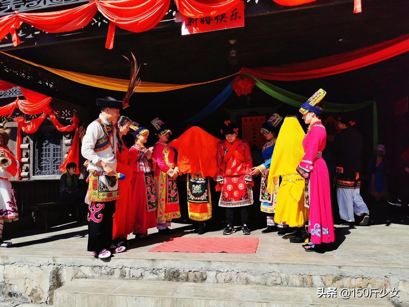 在羌族文化园也有羌族婚礼的表演,会在游客中选择一对。这场羌族婚礼非常盛大,新郎新娘穿上羌族精美的婚服,还原一场特色的羌族婚礼。
