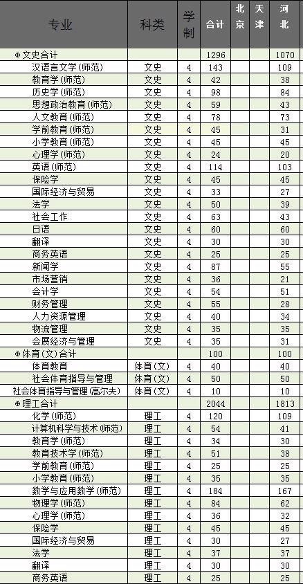 其中面向河北省内招生人数总计2983人,占比86.7%。包括文史类本科1070人,理工类1813人,体育类100人。