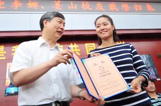 华中科技大学校长李培根授予李娜该校“杰出校友”称号 图/新华网
