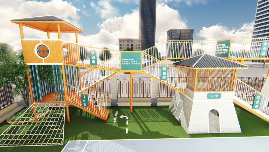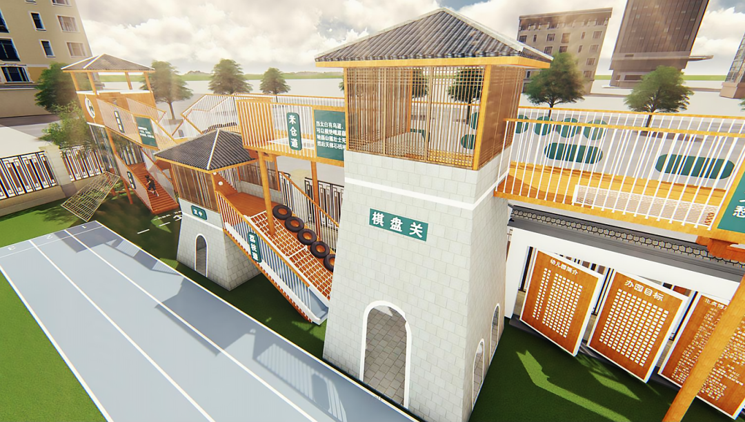 诗仙李白,入选“首批四川十大历史名人”,扬名海内外。一首《蜀道难》让“中国诗歌之乡”江油展现出独特的文化气质。江油东辰博苑幼儿园特邀北京博苑未来装饰设计公司倾力设计,打造中式庭院大门,园内设计以蜀道为主题的空中环廊。室内各功能馆、室内走廊、门廊等都以“诗城江油”为主题元素进行文化打造,室外设置多功能操场、足球场、攀爬区、自然探究区、戏水区等等,结合江油本土文化,打造独具特色的幼儿园环境,让家长和幼儿都满意。