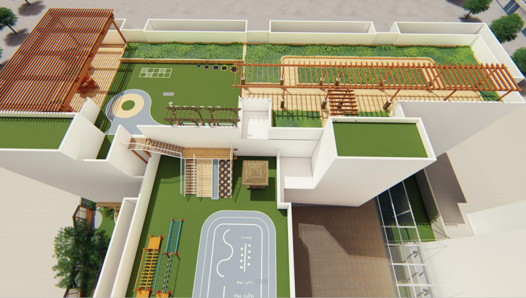 在东辰幼儿园里,老师们向宝贝征集自己理想幼儿园的样子,经过宝贝们简单的言语描述、丰富的色彩描绘后,我们看到了如彩虹般高耸的桥廊,高低错落的台阶,以及多到数不尽的玩乐设施……