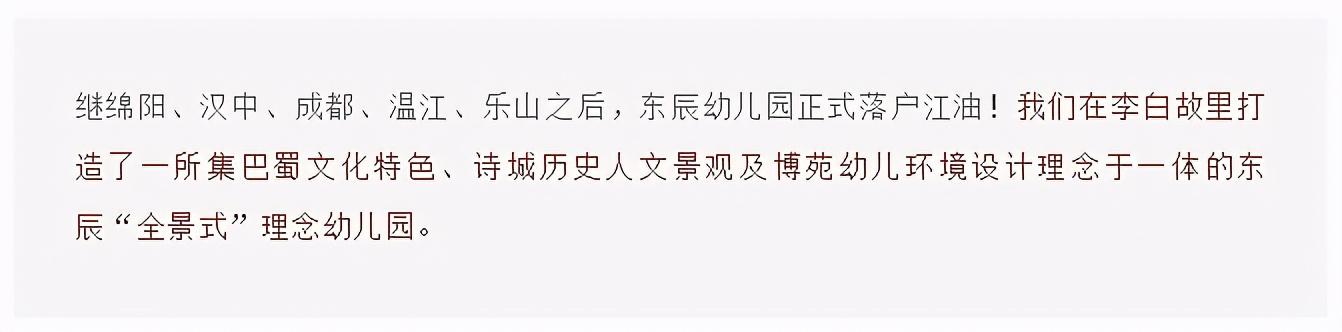 一座备受瞩目的“教育新地标”落户江油,在满足广大家长对优质教育多元需求的同时,将东辰学前教育理念与优质资源引进江油,把“教育新地标”落实到“民生新地标”,真正把东辰教育福利传播万家。