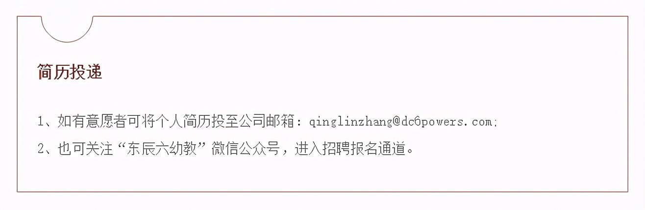 3.工作经验:丰富的幼儿教育管理实践经验;3年以上幼儿园教学管理经验;有新园筹建及蒙氏教学管理经验者优先。