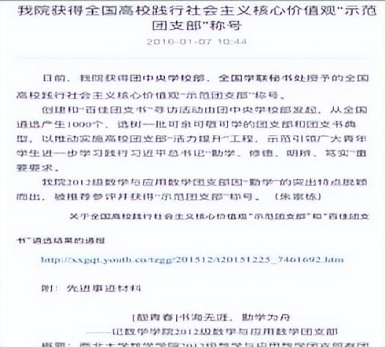 2012级数学与应用数学团支部荣获全国高校践行社会主义核心价值观“示范团支部”称号