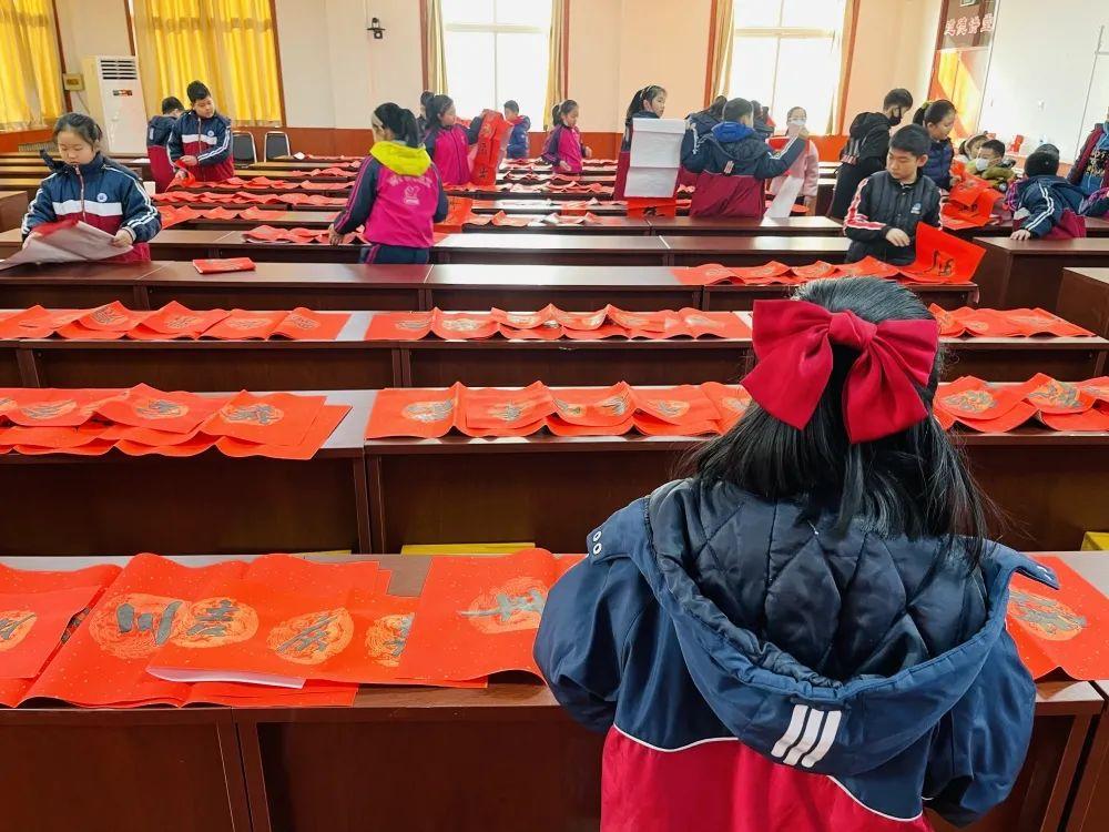 上联:金牛聚财千门瑞;下联:玉虎送宝万户新。(实小 刘翠老师)