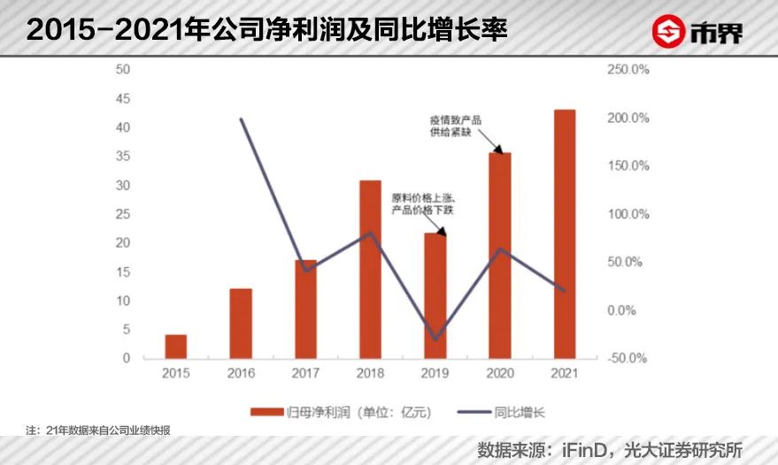 自2004年上市至今,公司没有一年出现亏损,营收从2004年的11.34亿元增长至2021年的147.98亿元,翻了13倍;净利润则从1亿元暴增至50亿元。公司市值从2004年15亿元到2022年4月29日690.2亿元。