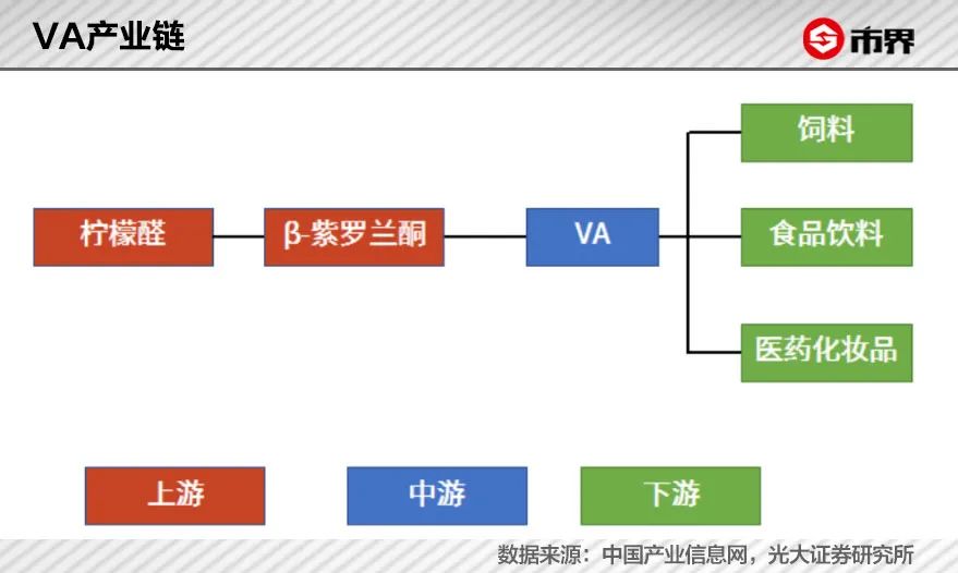 实际上,维生素除了用在保健、医药等领域外,更大的应用场景是饲料,特别是猪饲料。据中国产业信息网数据,维生素产品(含氯化胆碱)在饲料畜牧、医药化妆品及食品饮料等领域的应用分别占70%、15%、15%。