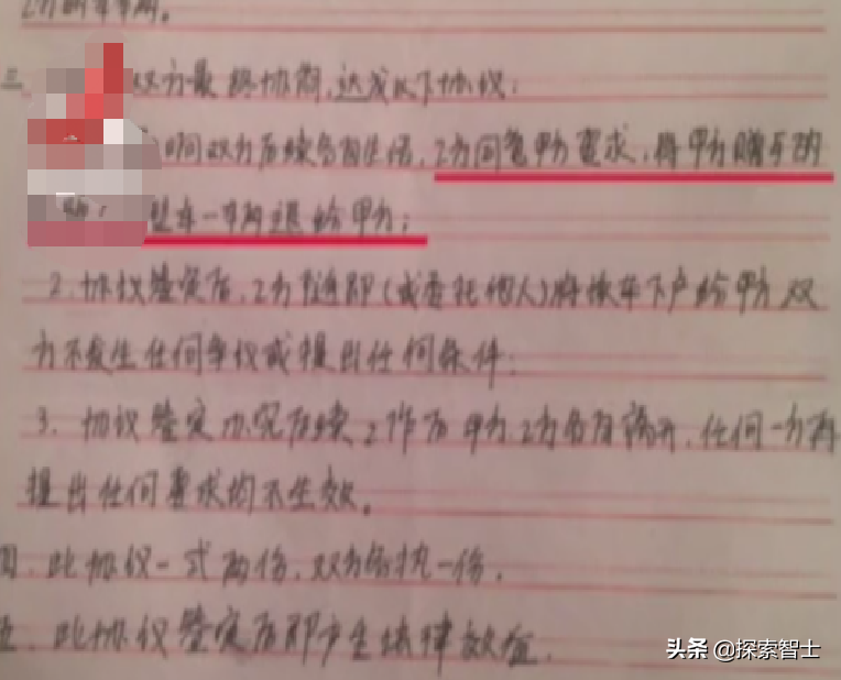 协议中清楚地写明了三点要求。前两点都是关于车的问题,而第三点,是最重要但也却是为以后埋下祸端的一点。