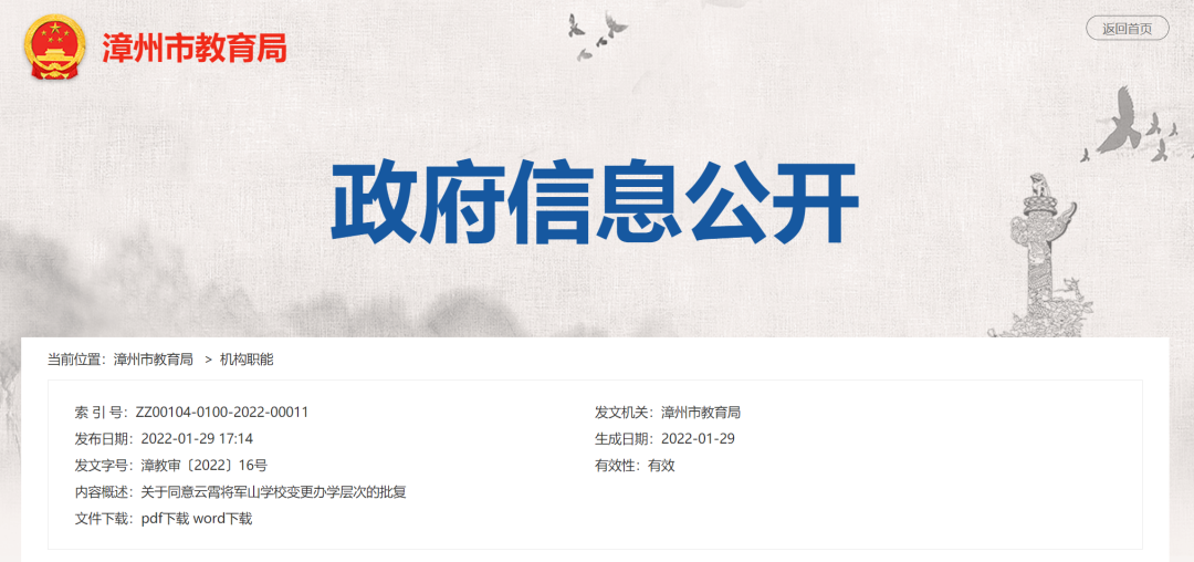 漳州一学校变更办学层次!