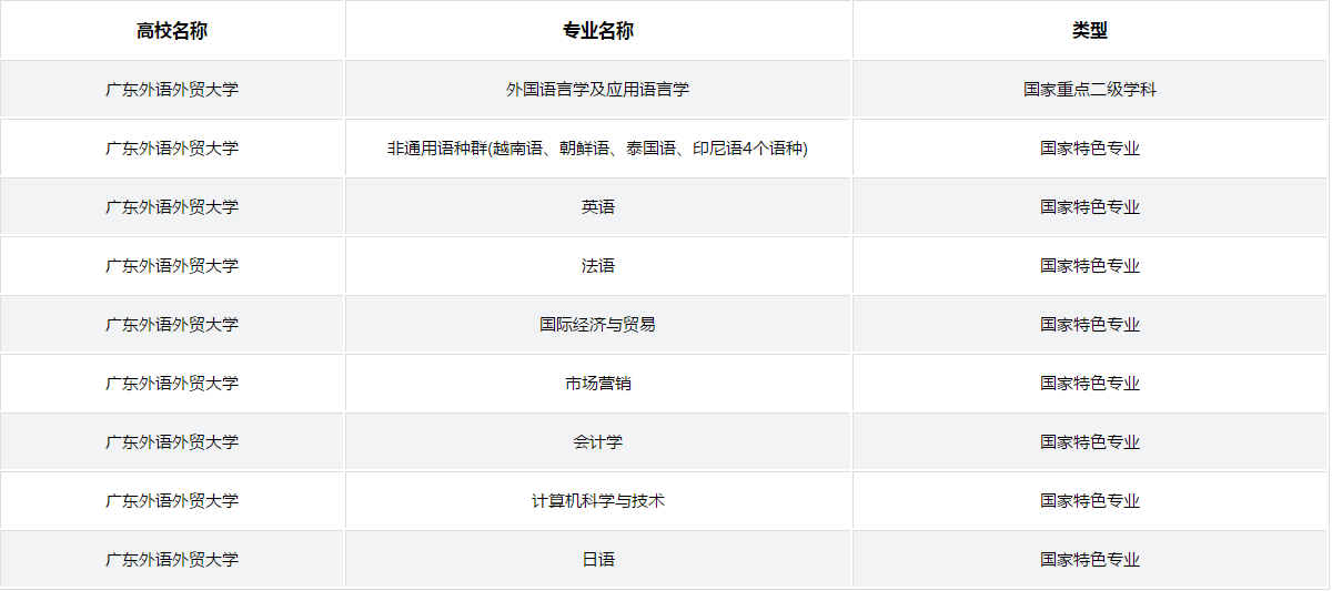 广外的外国语言文学类专业目前在第四轮的学科评估中获得A级,超过了大部分985和211高校,外国语言学及应用语言学是国家的重点二级学科,该校其他优势专业如下。