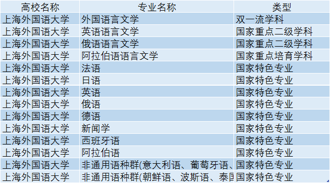 上海外国语大学的外国语言文学在最新的学科评估中也获得A+的水平,同时也入选一流学科,和北京外国语大学一样,是我国仅有的两所语言类211高校,优势专业如下;
