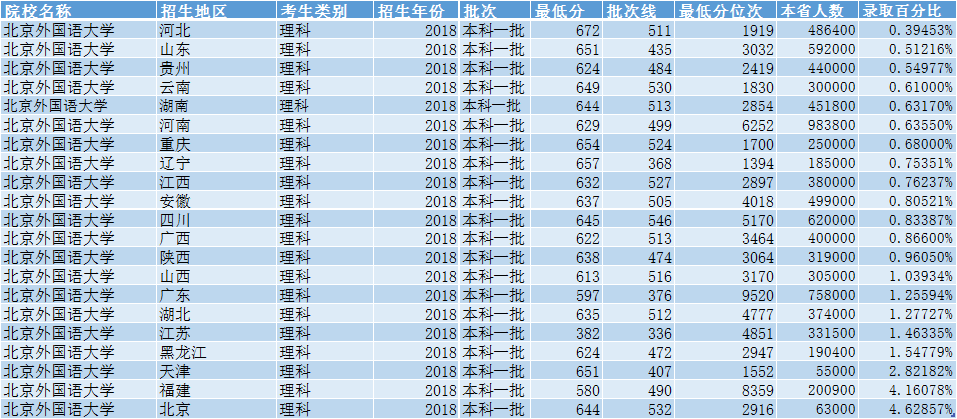北京外国语大学录取分数如下,性价比最高的省份如天津、黑龙江、江苏、北京几个省份,更多数据可以去高考科代表网站查询,所有数据应有尽有。