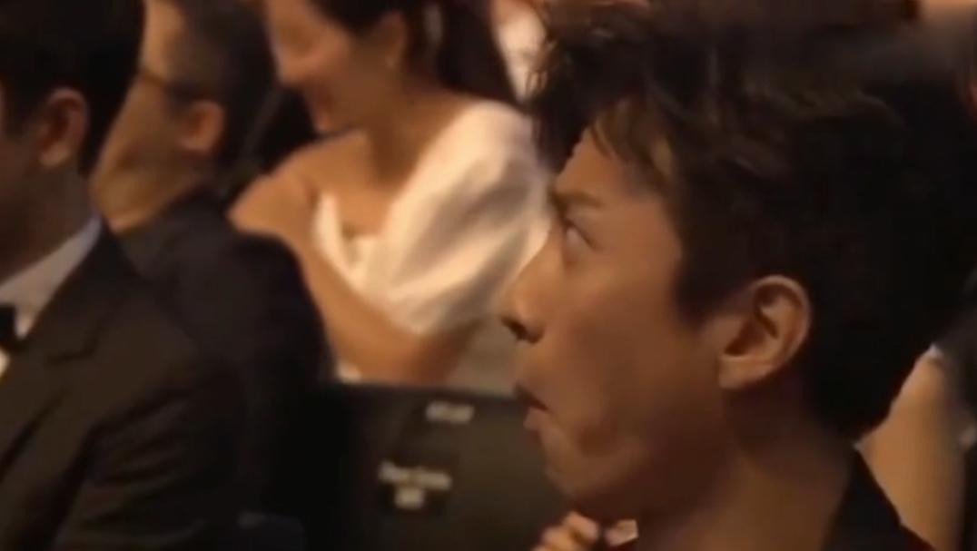 台下抓拍到的邓超瞪大了眼睛,很明显是被吓到了。