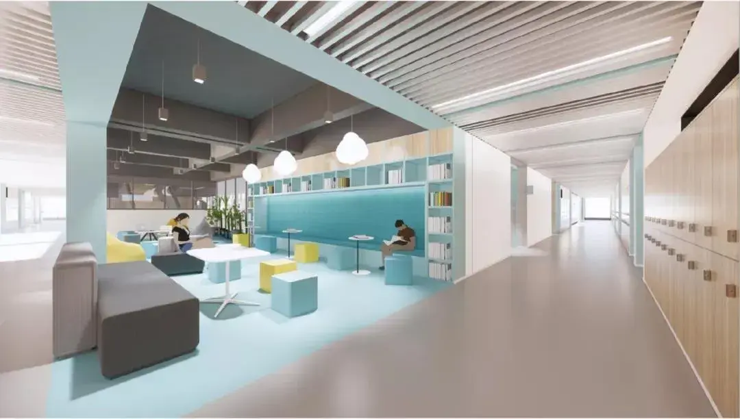 学校室内的环境大气宽广, 设计风格满足学习所需。