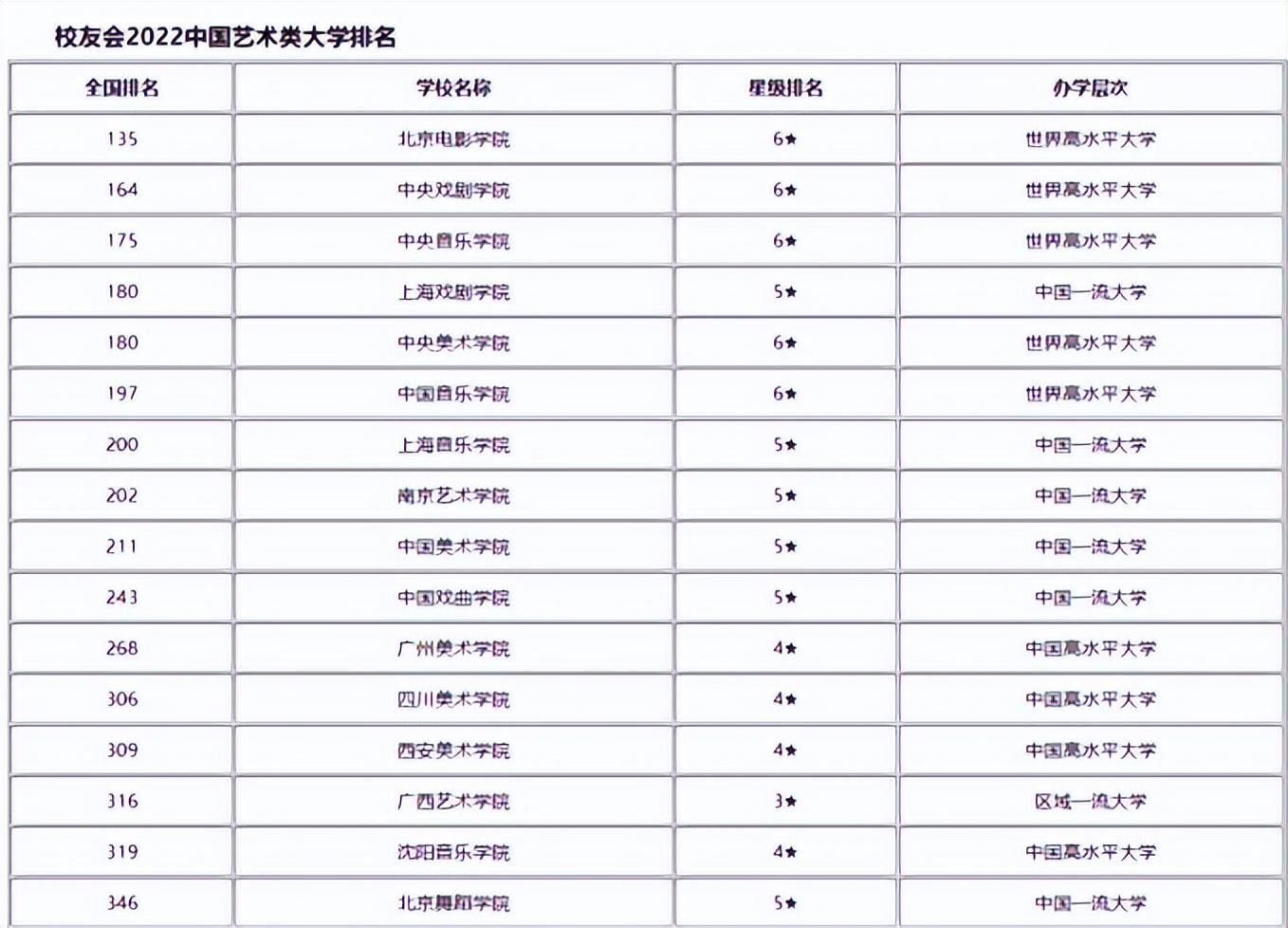 而我国单纯的艺术类院校,是有着不同办学层次之分的,其中办学层次最高的就是北电了,其综合排名是在艺术类院校中最高的。