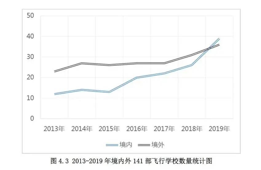 截至2020年3月6日,国内共有授权141培训学校41家。从2018年开始,141部航校开始出现大规模增长,仅2019年,就增加了10家,增长率达到39.5%,2020年新增2家。