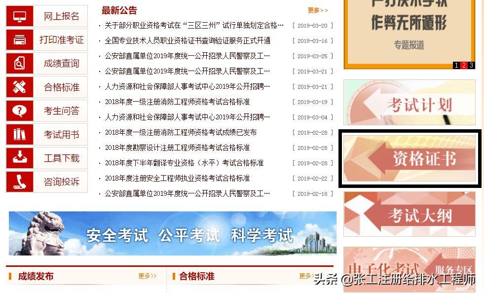 最近想报名参加2019年度注册环评工程师考试,于是抽空登陆了中国人事考试网查看报名信息,不想本年度环评考试报名早已截止,看到这个消息真是哭笑不得,看来今年的努力基本要白费了(其实也没咋看书,捂脸....)。不想却意外发现2019年3月16日中国人事考试网新进上线了一项新功能:全国专业技术人员职业资格证书查询验证服务。作为考证党,竟然对伟大的中国人事考试网关注度这么低,绝对该批评,不过我估计比我还后知后觉的小伙伴绝对大有人在,所以咱今天就扯着嗓子给宣传宣传,希望能够对考证小伙伴们有所帮助。