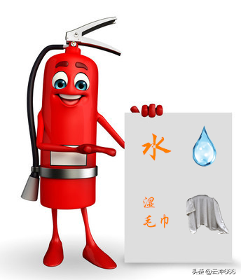 1、灭火器、水等,湿毛巾,每人一份。