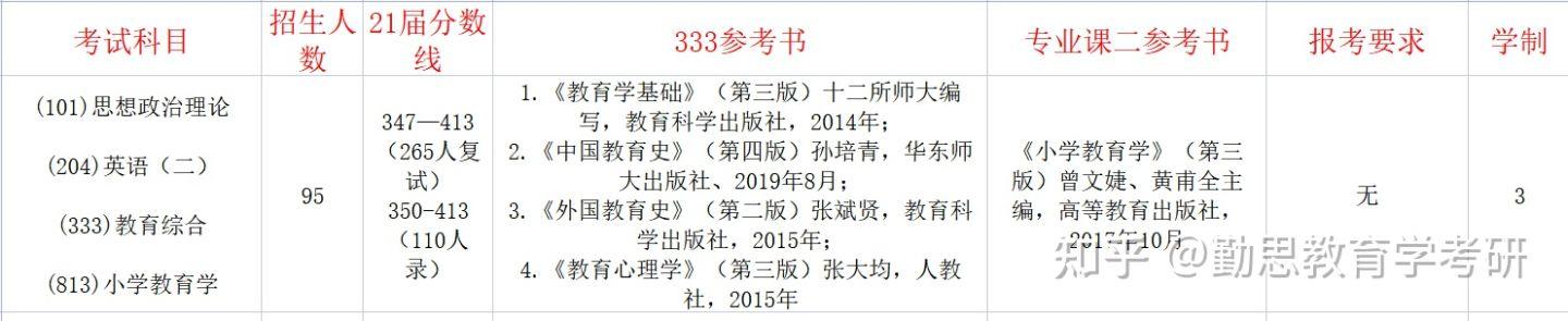 入选理由:重师大小学教育考研全国招生人数第一,就算不考,咱们也可以了解一下对比一下,做一个参考,招生人数95人,21届进复试最低分347,拟录取最低350分,分数不算很高,专业课二一本书相对好复习,对于跨考生来说,重师大绝对是一个不错的考虑对象,虽然网传重师大出题难,但高分并不少,所以重师大绝不是一个压分的学校