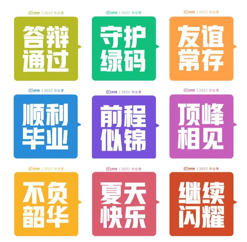 答辩通过、守护绿码、友谊长存、顺利毕业、前程似锦、顶峰相见、不负韶华、夏天快乐、继续闪耀
