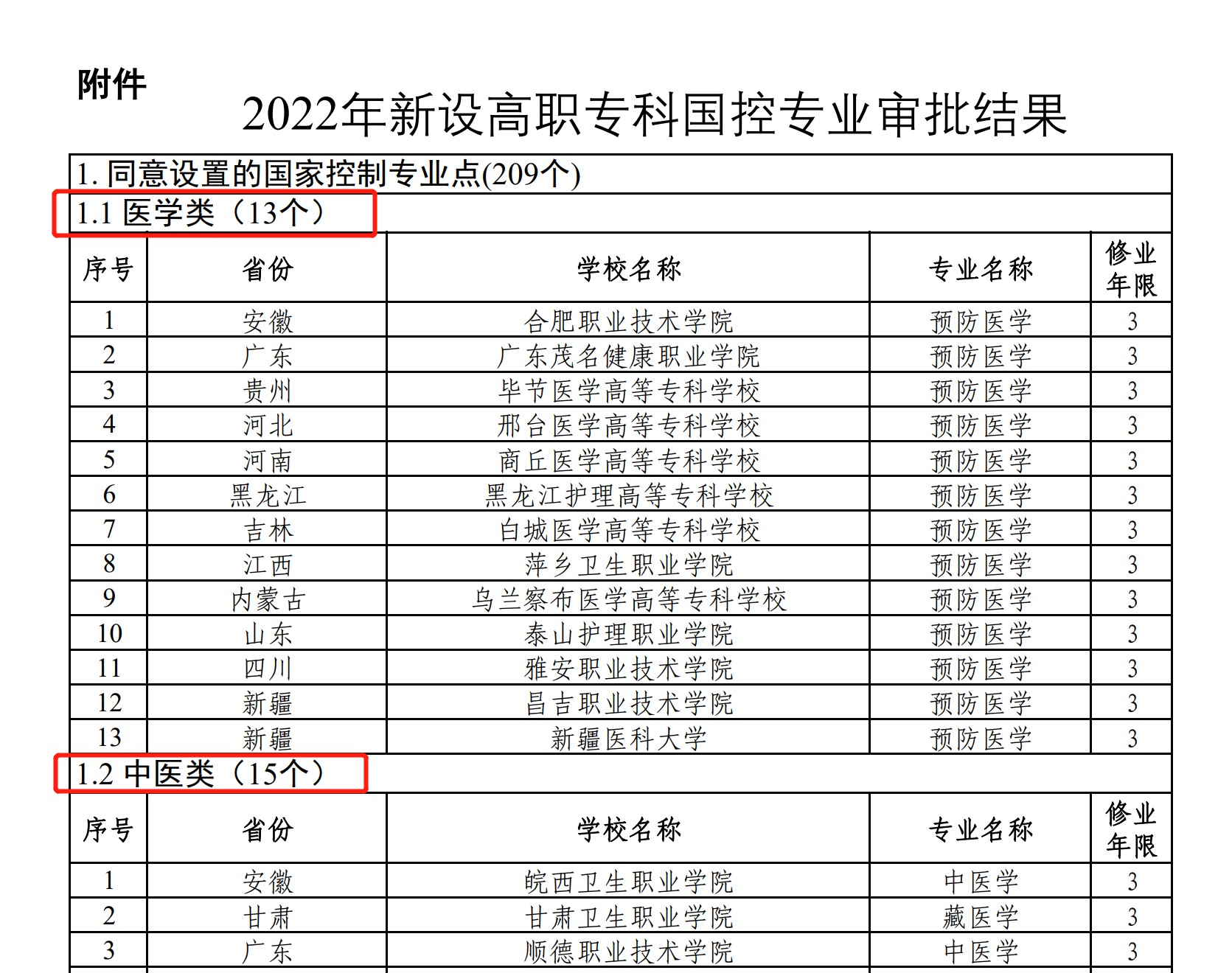 28个医药类专业,包括13个医学类专业和15个中医类专业。医学类专业的专业名称全部为“预防医学”,中医类专业包括中医学、藏医学、针灸、推拿四种专业名称。