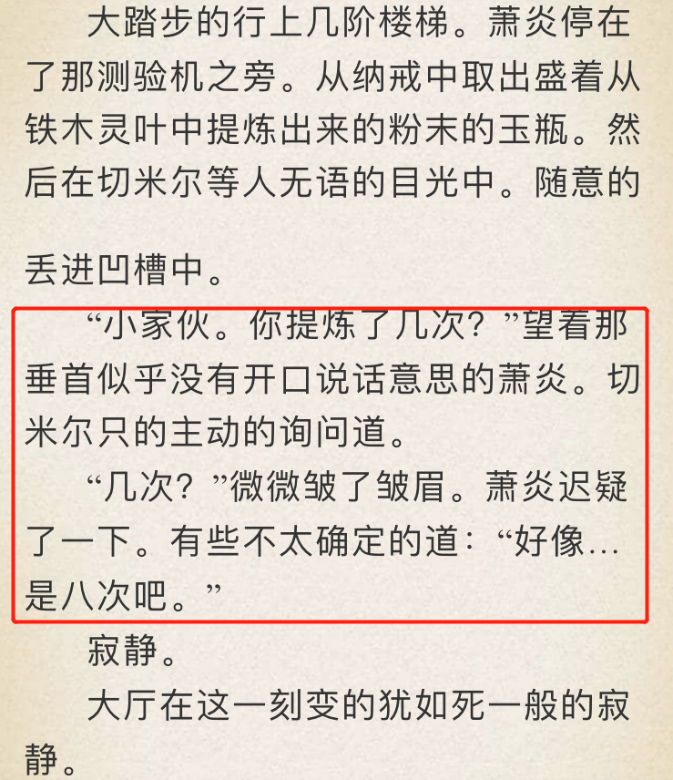 现在动画做成加大火力就能够快速提炼,假设萧炎口中的一点时间是五分钟,那么他需要在这五分钟里面,硬生生提炼多7次,这本身就是不合理的。