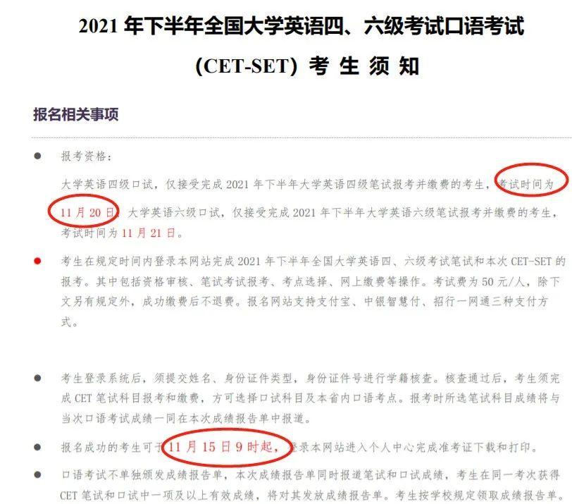 口试考试时间:四级11月20日,六级11月21日;
