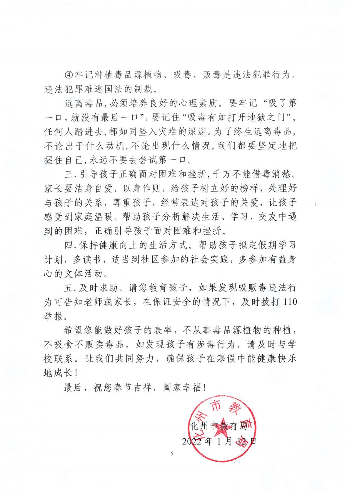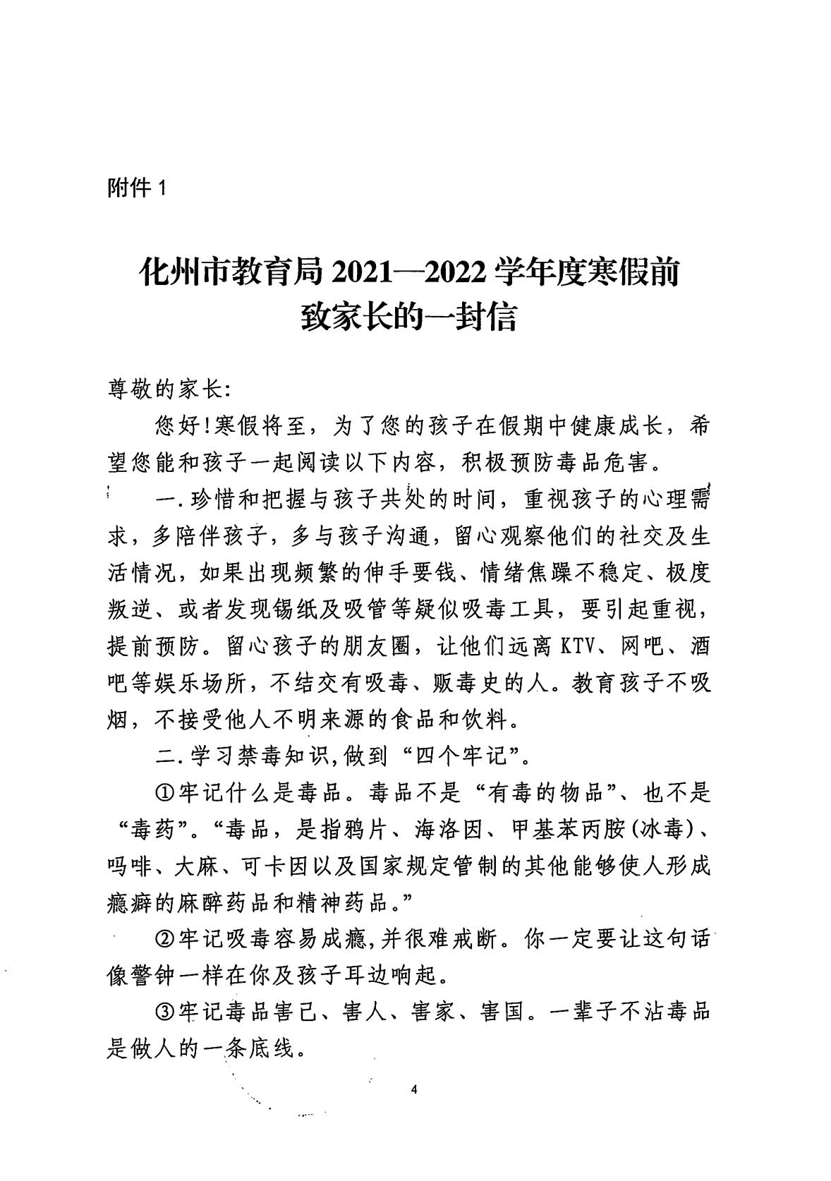 四、发放禁毒宣传教育《致家长的一封信》,在信中学校倡议,家长们能认识毒品和它的严重危害性,从而帮助提高警惕,远离毒品,拒绝毒品,使孩子们能健康茁壮地成长。