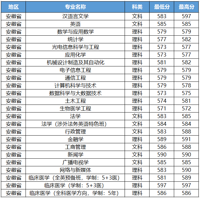 1、这是2019年汕头大学在安徽省招生的录取分数线