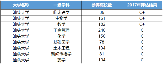 汕头大学2017年的学科排名