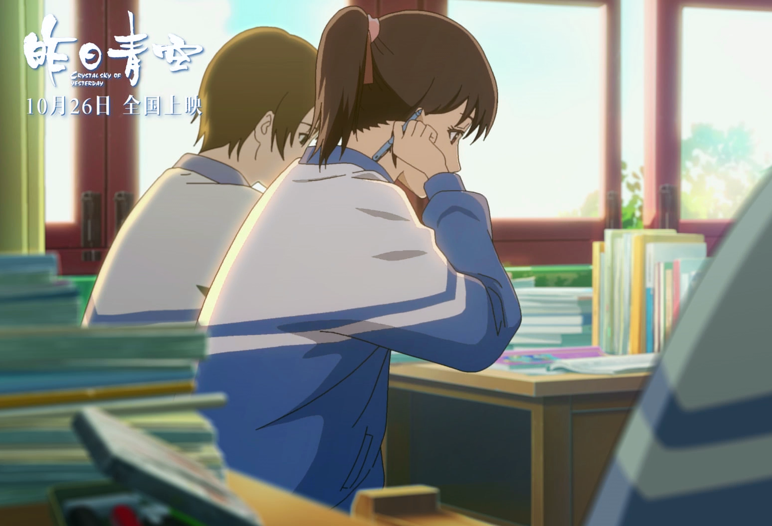 快放学了,叶梓要筱筱帮忙写政治作业,筱筱不答应,可当她发现政治作业本仿佛是下午被叶梓塞进情书的本子,顿时佯装在无奈中接受现实般接过叶梓递来的本子。