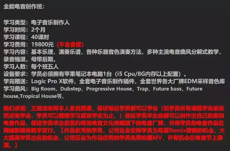 这次再办学校,和之前用来维生不一样,王绎龙想做自己的厂牌。在他的培训学校主页上,有全能电音创作班、全能艺人唱作班、和高级电音进修班三类课程。