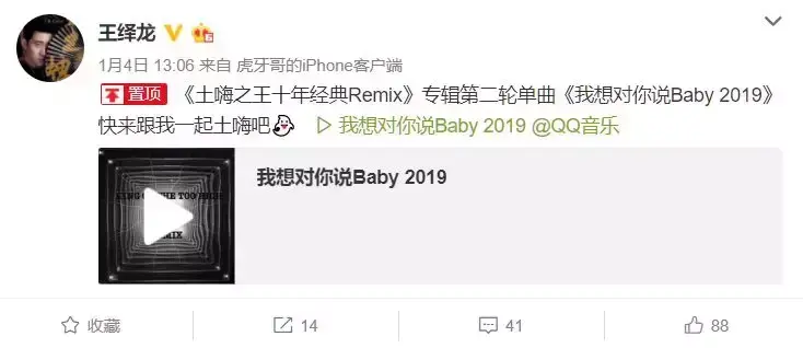 “我的《午夜DJ》《电音之王》,五十年之后还可以编成别的曲风,但你现在的编曲放在那时候听,可能不知道土成什么样子了!”2018年末,王绎龙计划把自己原来的老歌重新编曲,出一张《土嗨之王十年经典专辑》,现在已经发了两首单曲。“别人的叫电音,我的叫歌曲。创作方式错误,歌曲永远火不了。”