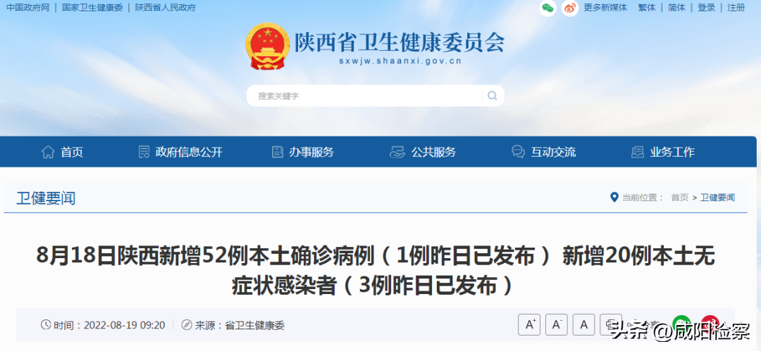 8月18日0-24时陕西新增报告本土确诊病例52例(1例为无症状感染者转确诊)其中商洛34例、西安15例渭南2例(1例昨日已发布)、铜川1例无症状感染者20例其中商洛11例、西安5例、渭南4例(3例昨日已发布)